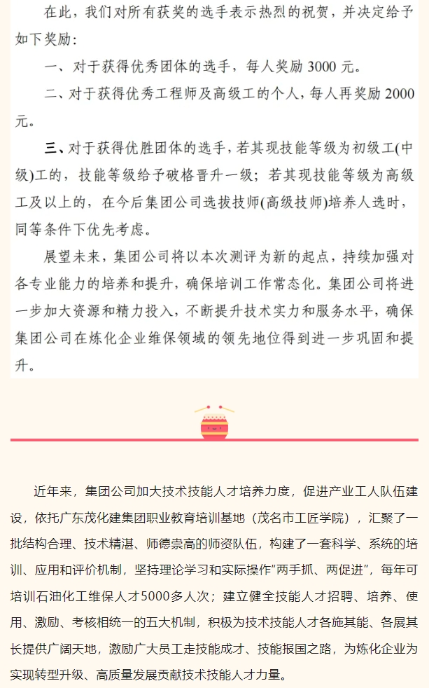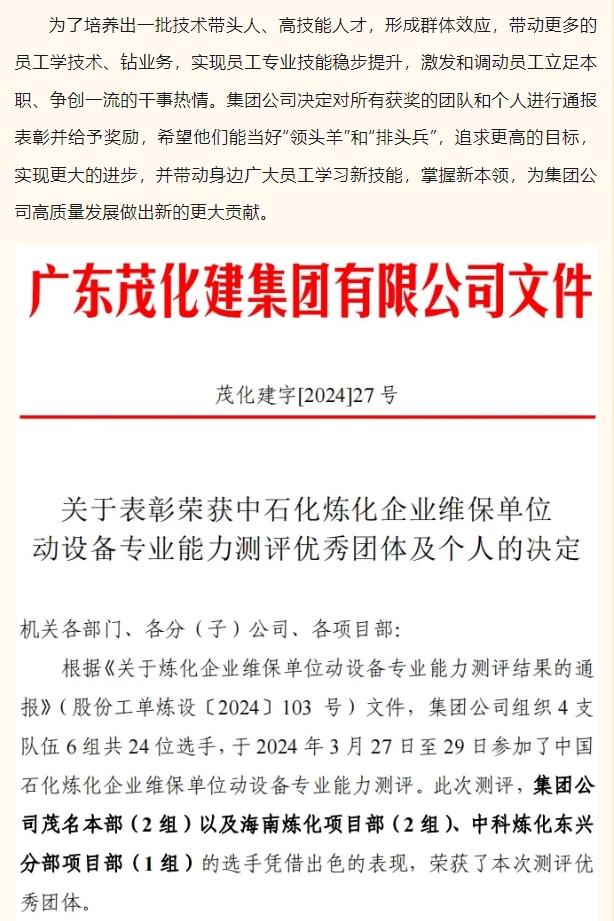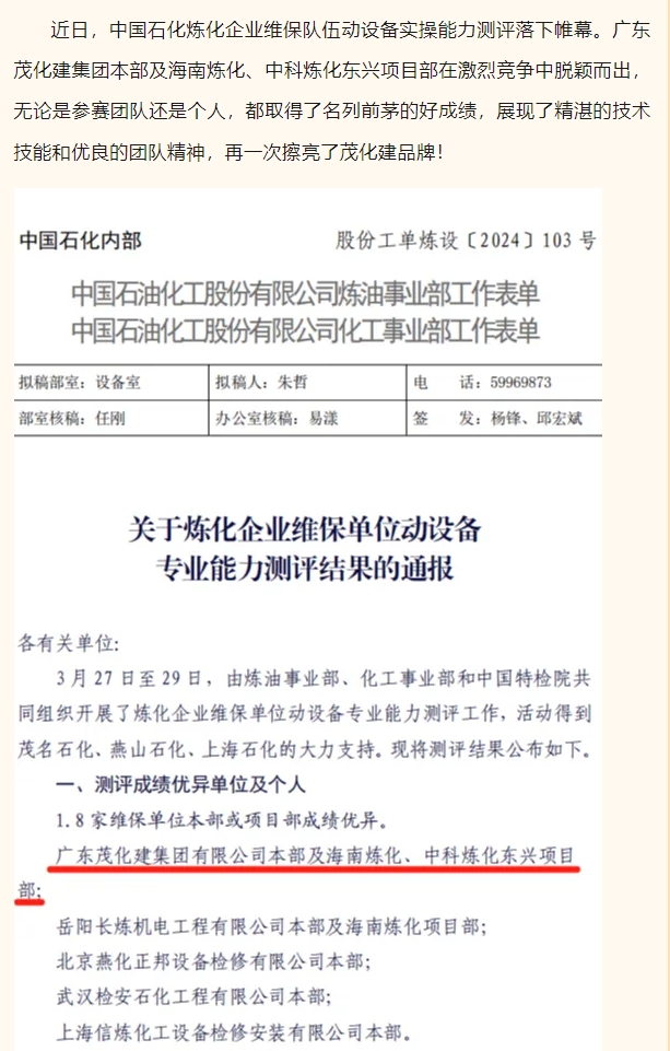祝賀!茂化建在中石化煉化企業(yè)維保隊伍動設(shè)備實操能力測評中成績優(yōu)異,名列前茅