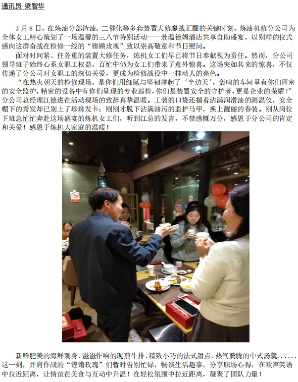 煉油機(jī)修分公司舉辦溫情三八節(jié)活動(dòng)