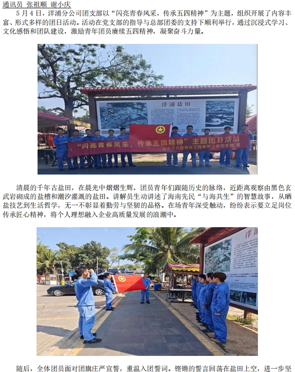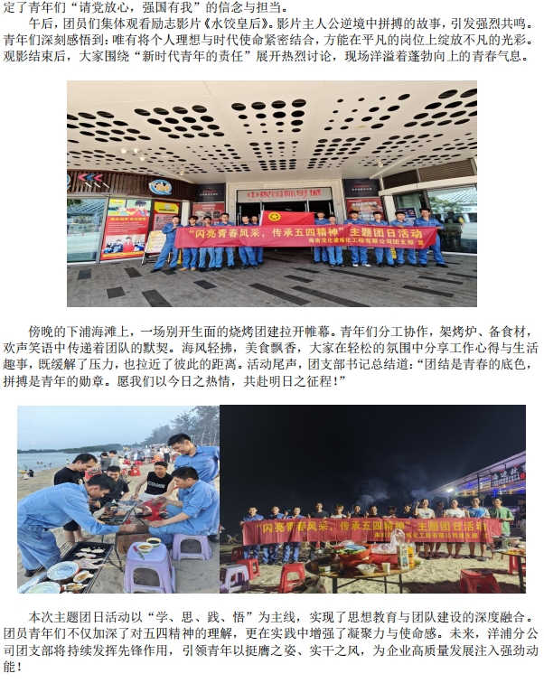 洋浦分公司團支部開展“閃亮青春風(fēng)采,傳承五四精神”主題團日活動
