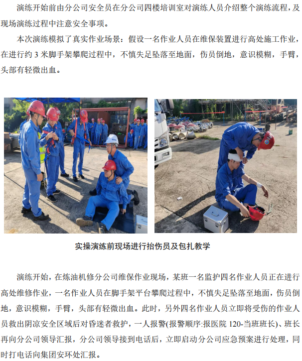 煉油機修配合集團安環(huán)處開展高處作業(yè)墜落事故應(yīng)急演練
